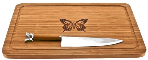 Bamboo Cutting Board with Stainless Steel Knife Etched Butterfly